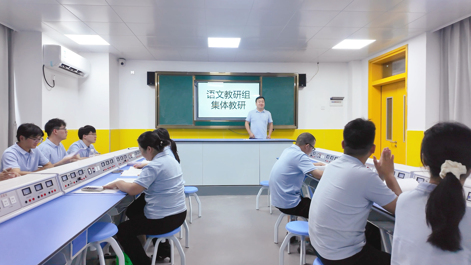 为提升教学与班级管理质量,校长胡海明诠释了 “6+1” 课堂模式与班主任工作。“6+1” 模式中,课堂内包含 “导、思、议、展、评、检” 六个环节,课后通过 “练” 巩固知识、转化能力,辅以个性化指导,形成学习闭环。各年级组围绕该模式展开讨论,教研组同步学习《新课标》并规划组内工作,备课组也明确了新学期计划。