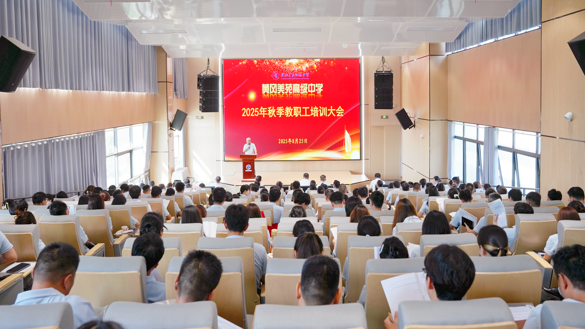 “夏尽秋来暑气散,笃学笃行正当时。”为夯实教育根基、提升教育教学质量, 8月25日至27日,黄冈美苑高级中学近200名教职工齐聚一堂,在四楼报告厅召开暑期教职工大会,充电赋能,为新学期教育教学筑牢基础,再攀新高。大会由党支部书记吴艳明主持。