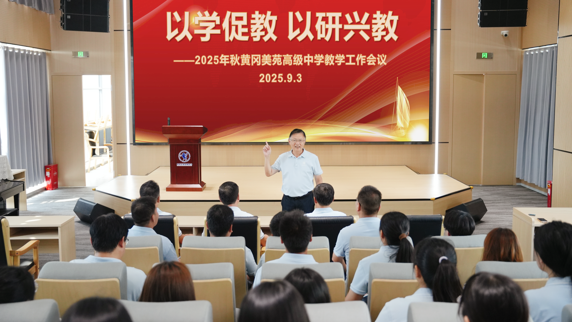 9月3日上午,黄冈美苑高级中学召开2025年秋教学工作会。校长胡海明、董事长助理胡鑫、副校长陈志平,教务处、教研室负责人,各学科教研组长、备课组长及全体教务干事参会,教务副主任祝枫主持会议。会议围绕三大核心议题展开,为新学期的教学工作进行了整体部署。