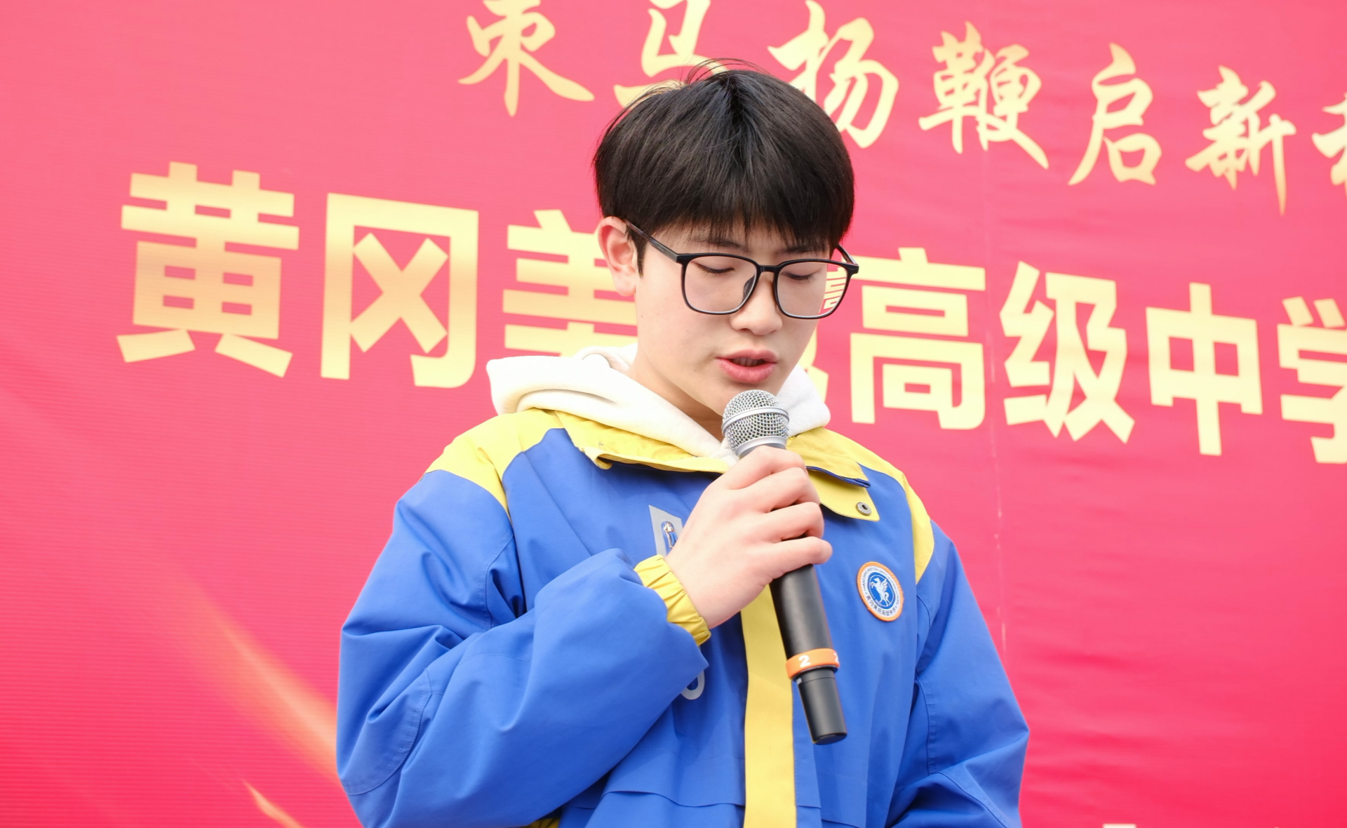随后,高一(1)班张雅桢、高二(7)班张哲、高三(9)班徐粤生三位学生代表依次登台,分享心声、诉说理想,并分别带领本年级同学庄严宣誓。青春的誓言铿锵有力、激荡人心、响彻云霄,充分展现了美苑学子昂扬向上、勇毅前行的精神风貌。